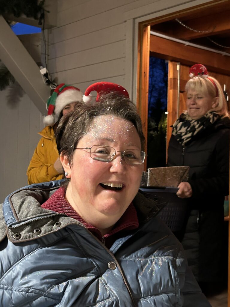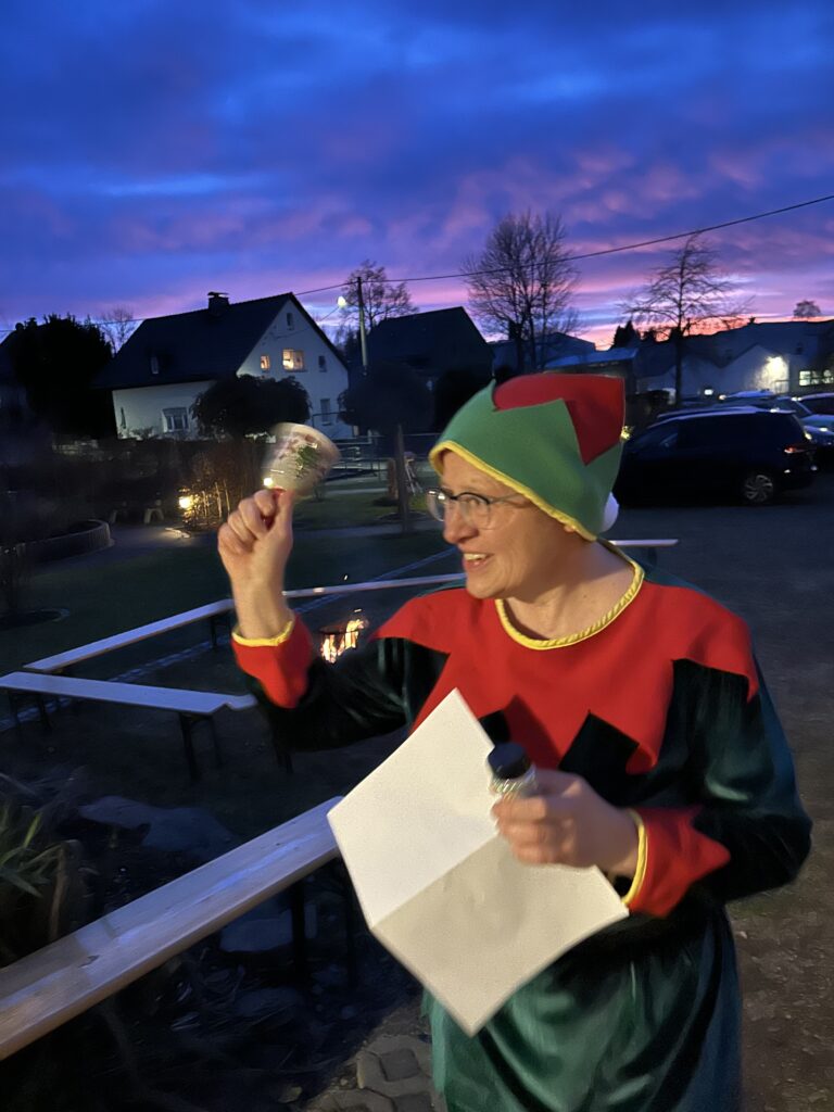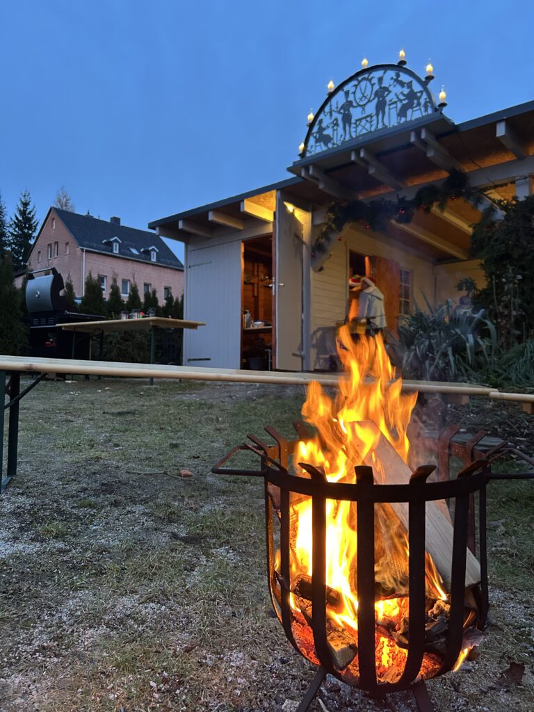 Unsere Terrasse im Wohnprojekt wurde dafür wunderbar weihnachtlich hergerichtet, geschmückt und dekoriert – ein liebevoller Ort, an dem sofort festliche Stimmung aufkam.
